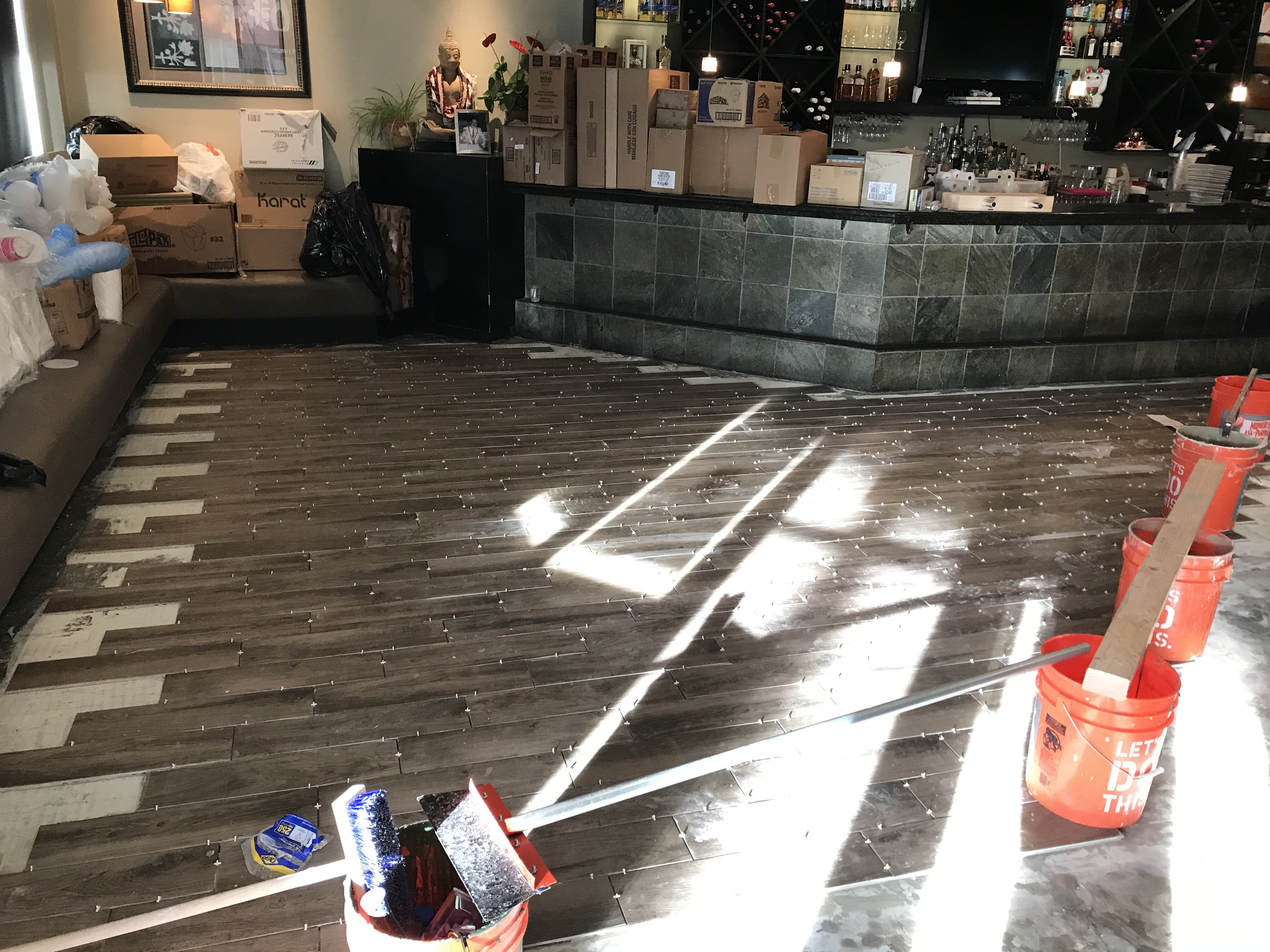 During the Covid-19 pandemic this Thai restaurant needed some decorative pieces made to ensure social distancing when patrons returned. This work was done while the shutdown was in full effect. The owners also saw the shutdown as a chance to update their flooring to a ceramic wood grain plank tile. Myself and a partner installed this tile and built the dividers while navigating Covid-19 protocols.